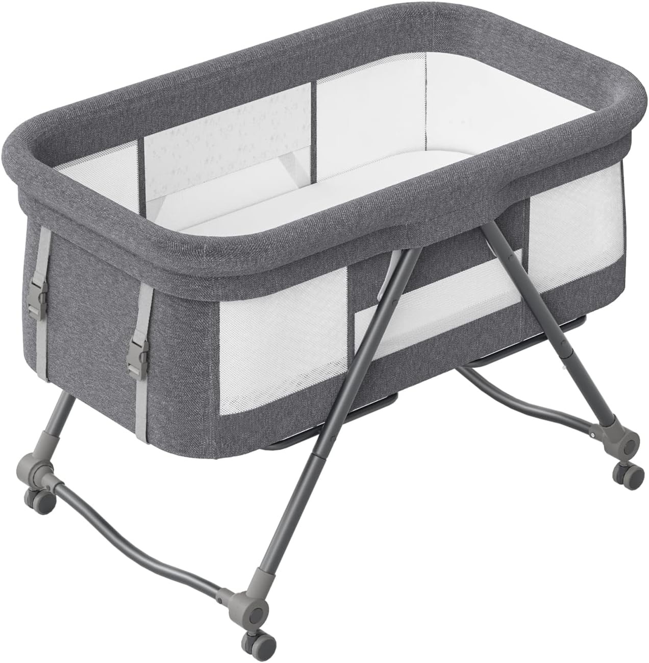 Functions as bedside crib and standalone cot.Adjustable height fits various beds.