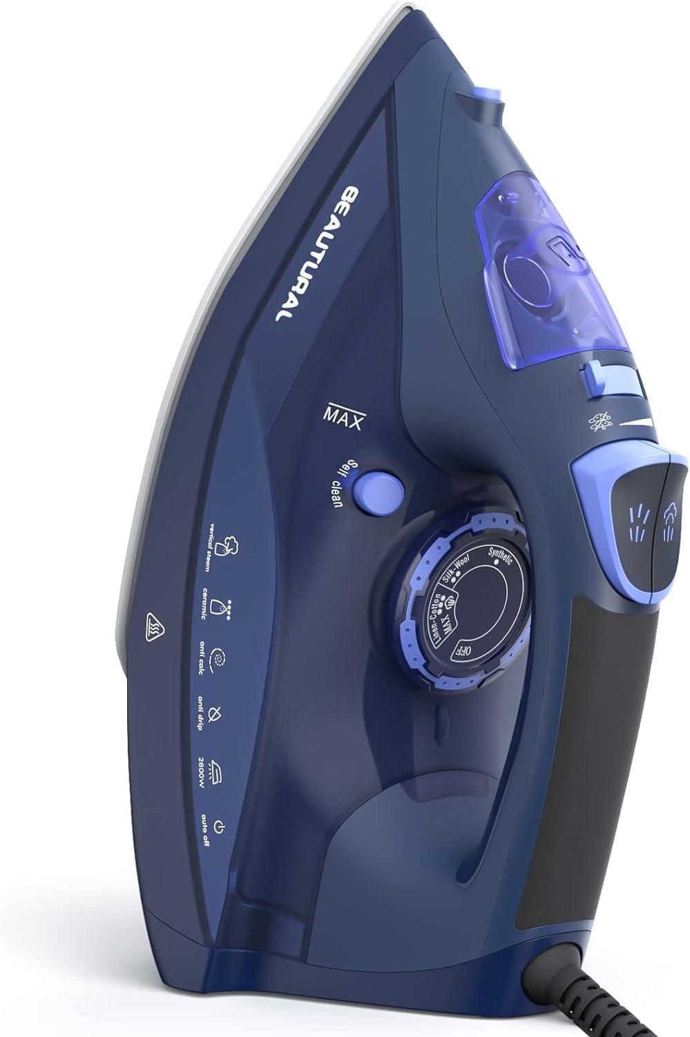 Non-stick ceramic soleplate for smooth gliding.Delivers powerful continuous steam for crease removal.