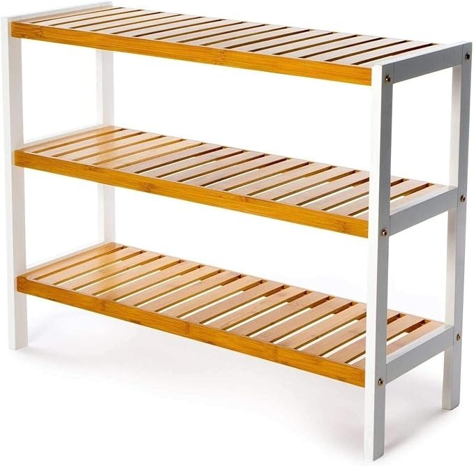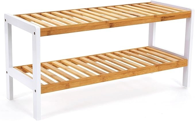 Sturdy bamboo structure with bench style topTwo tier layout suits daily footwear use