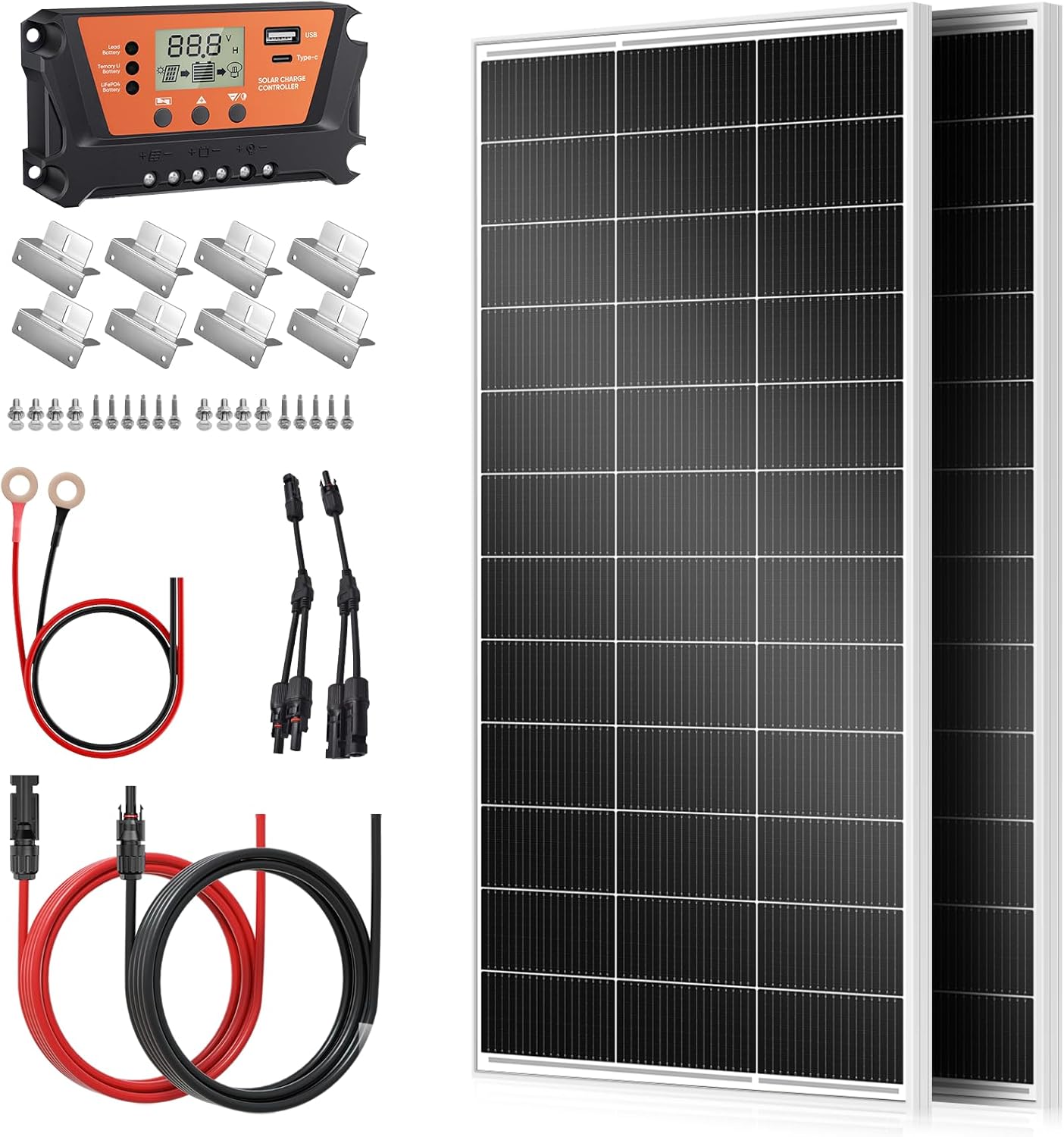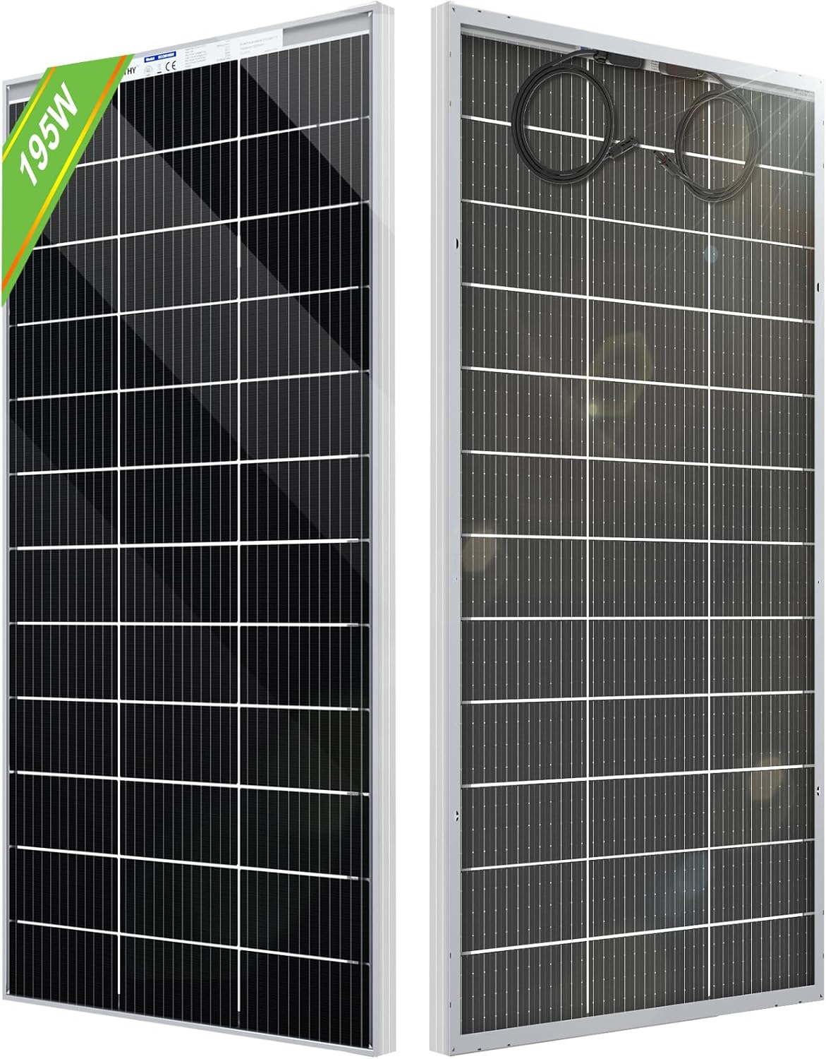 Power: 400W for off-grid home, RV use.Efficiency: 21% efficiency with monocrystalline cells.