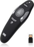 Control Distance: Covers up to 100 feet.Functionality: Includes laser pointer, slideshow control.