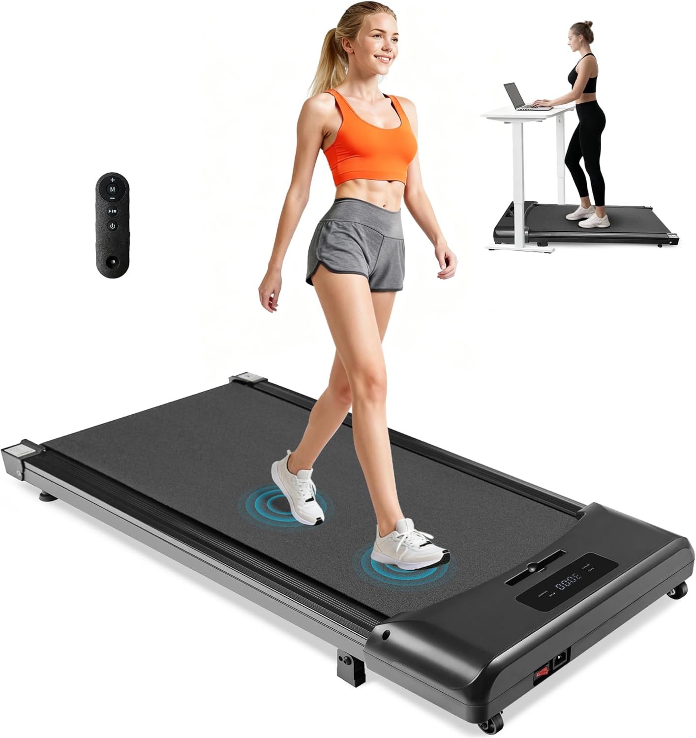 Einsatz unter dem Schreibtisch & Ergonomie: Passt mit einem ultraflachen Design unter jeden Schreibtisch; ein Sensorsystem passt die Geschwindigkeit automatisch dem Schritt an.